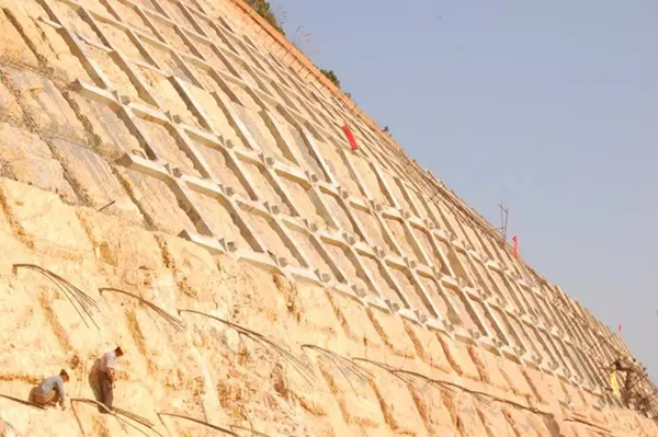 錨索框架梁適用于:錨索框架梁防護(hù)主要針對(duì)邊坡不穩(wěn)定,有軟弱巖層或滑動(dòng)面的高邊坡,要通過錨索穿過軟弱巖層或滑動(dòng)面,錨固在堅(jiān)硬的巖層中(稱內(nèi)錨頭),然后在另一個(gè)自由端(稱外錨頭)進(jìn)行張拉,從而對(duì)巖層施加壓力對(duì)不穩(wěn)定巖體進(jìn)行錨固。