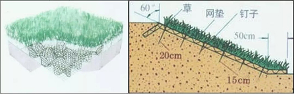 適用范圍:適用于附近草皮來源較易、邊坡高度不高且坡度較緩的各種土質(zhì)及嚴(yán)重風(fēng)化的巖層和成巖作用差的軟巖層邊坡防護(hù)工程,是設(shè)計(jì)應(yīng)用最多的傳統(tǒng)坡面植物防護(hù)措施之一