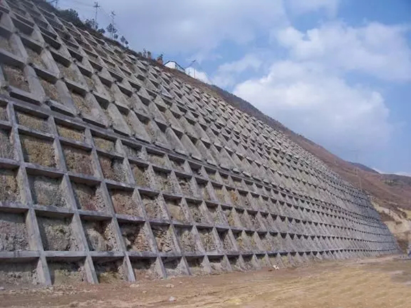 優(yōu)點(diǎn):該技術(shù)所用框磚可在預(yù)制場(chǎng)批量生產(chǎn),其受力結(jié)構(gòu)合理,拼鋪在邊坡上能有效地分散坡面雨水徑流,減緩水流速度,防止坡面沖刷,保護(hù)草皮生長(zhǎng)。這種護(hù)坡施工簡(jiǎn)單,外觀齊整,造型美觀人方,具有邊坡防護(hù)、綠化雙重效果,工程造價(jià)適中,略高于漿砌片石骨架護(hù)坡,該技術(shù)多用于填方邊坡的防護(hù)。